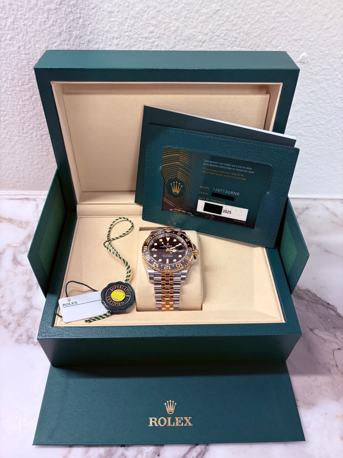 2025 Rolex GMT Master II 126713GRNR Zombie two tone yellow gold- Brand new never worn watch, comes with all original manufacture packaging as pictured.